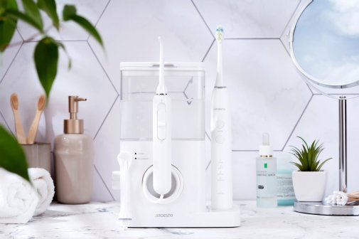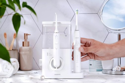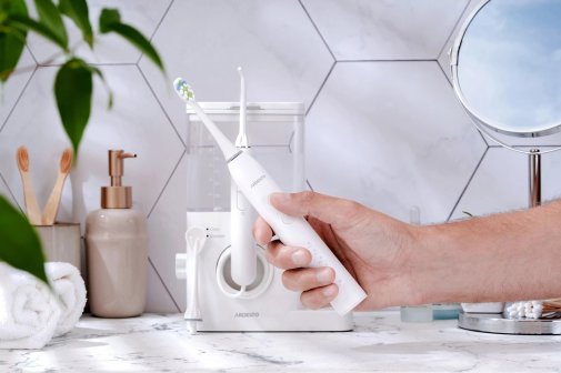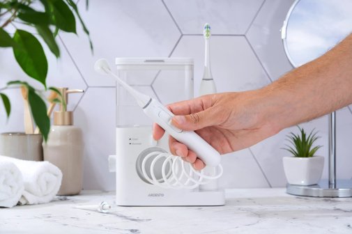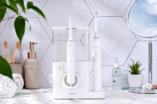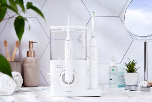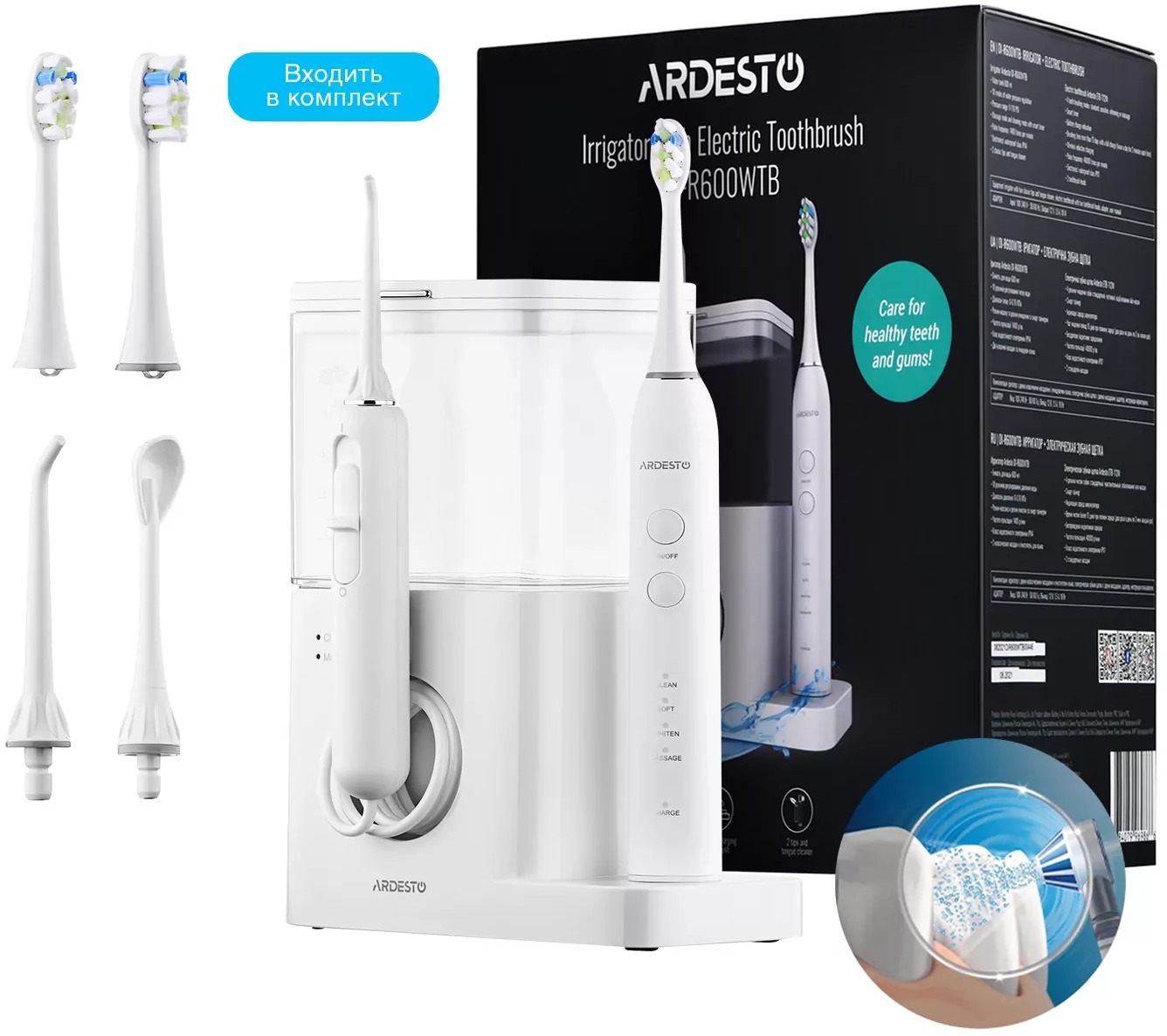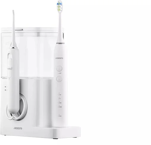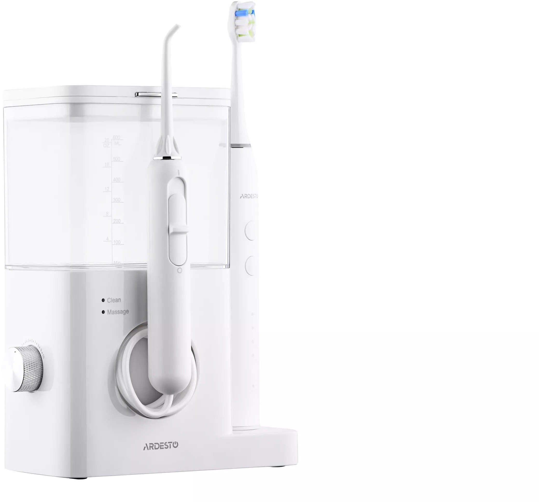 Ardesto OI-R600WTB — комплексний зубний центр для дорослих, що поєднує в собі стаціонарний іригатор та електричну зубну щітку зі звуковою технологією чищення. Такий комплект забезпечує максимально ефективний догляд за ротовою порожниною: очищення зубного нальоту та каменю, масаж ясен, догляд за поверхнею язика та підтримання свіжості дихання.
