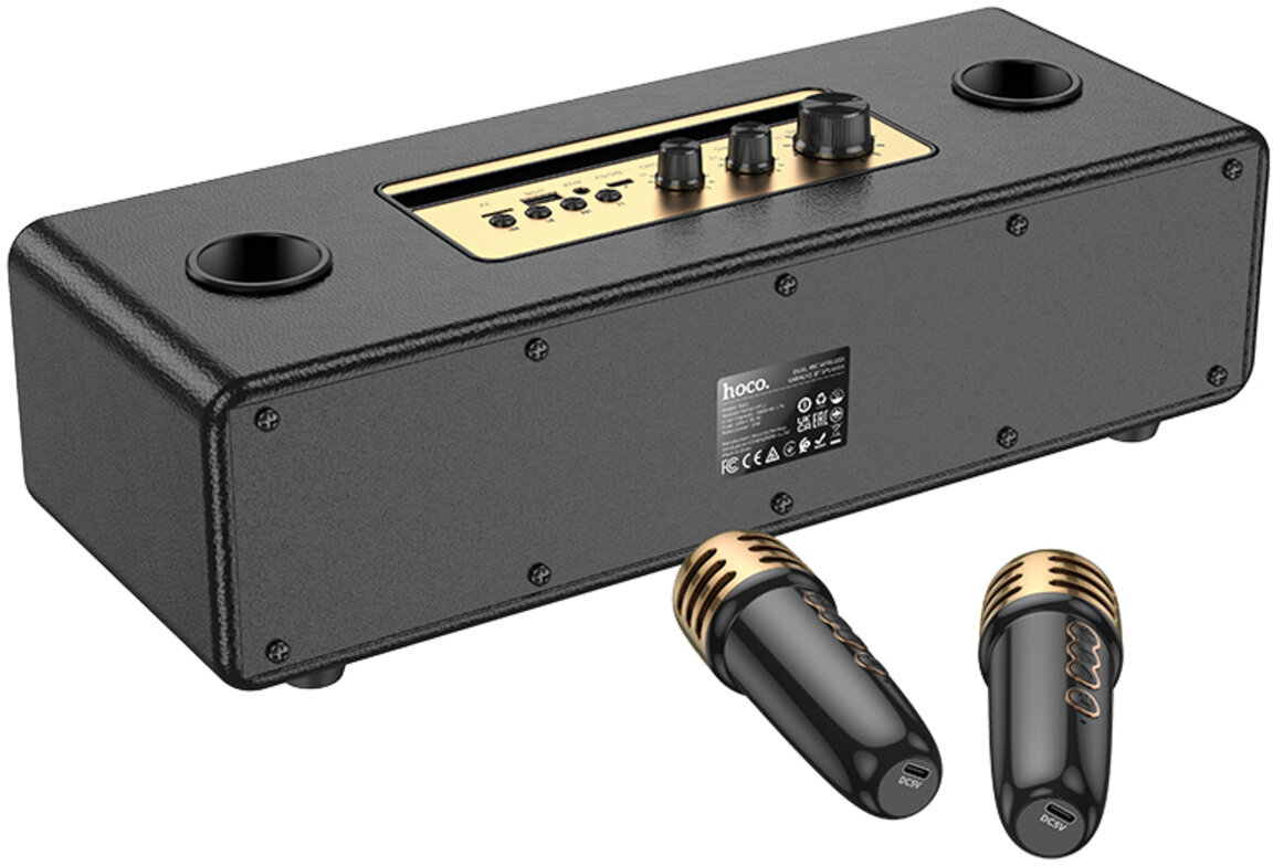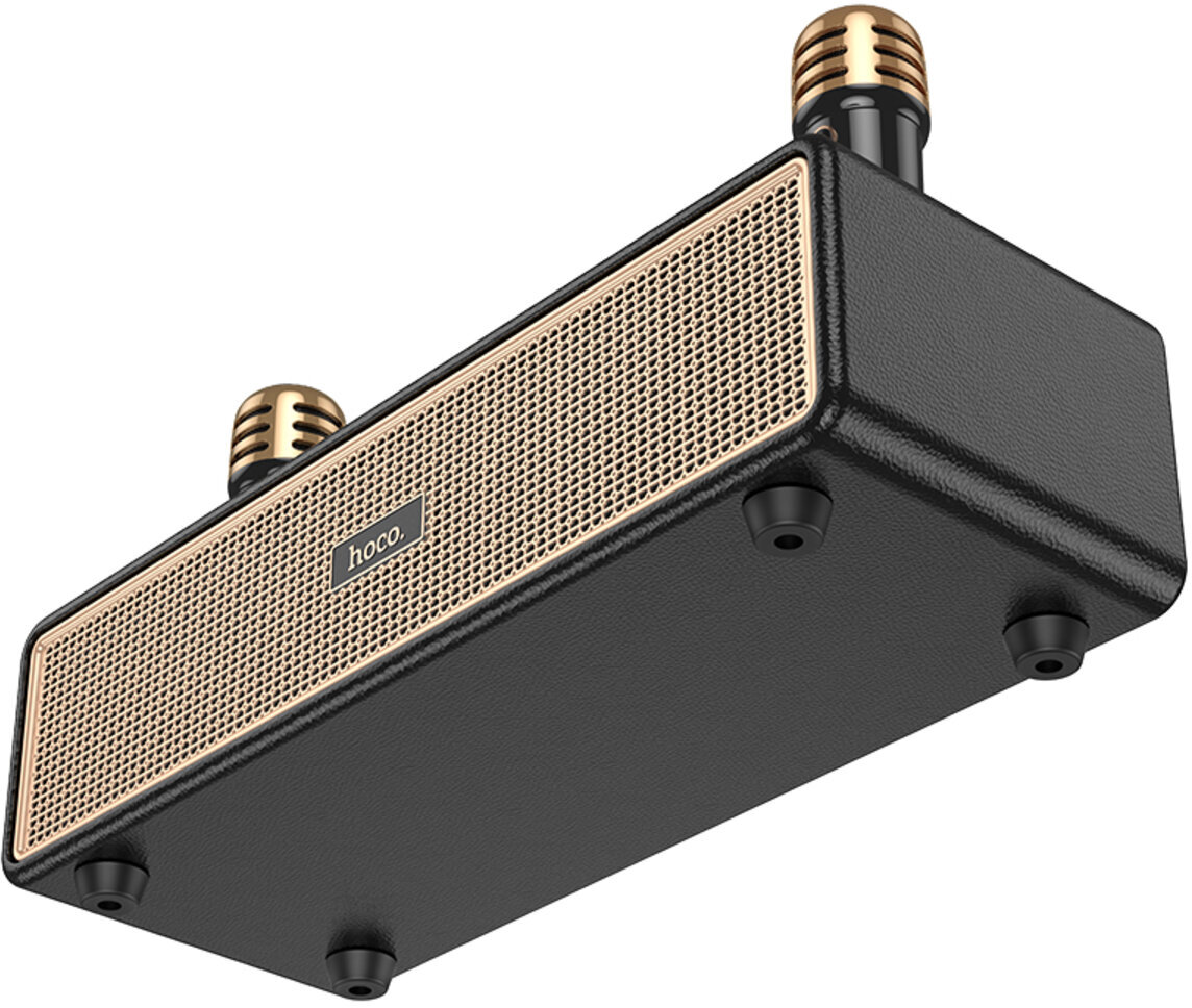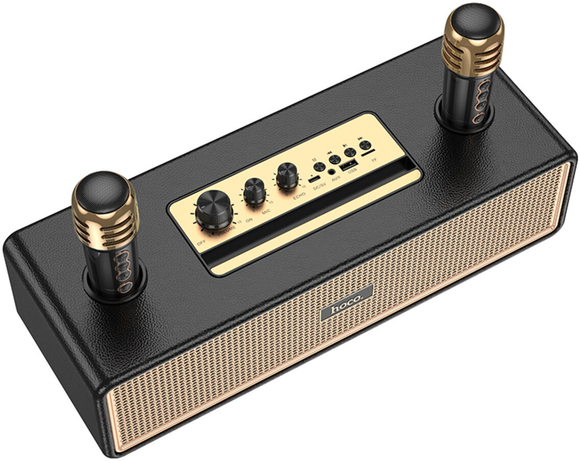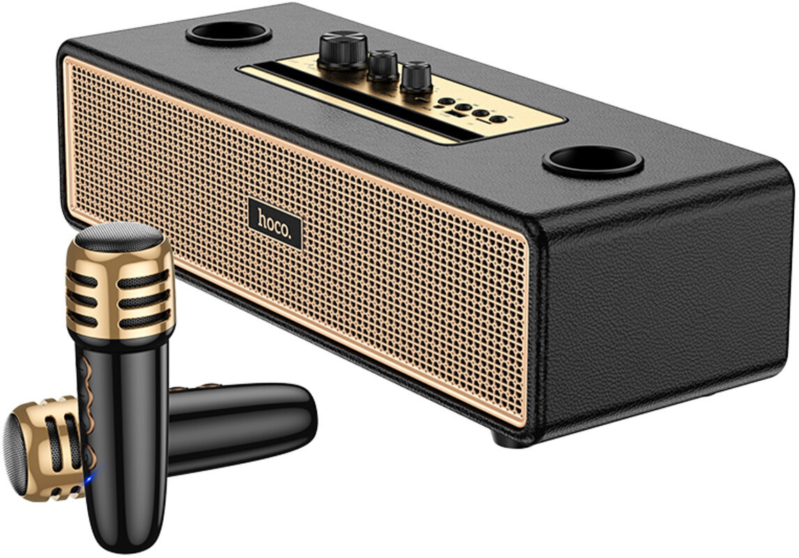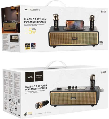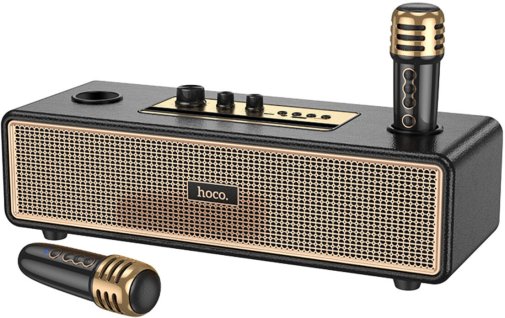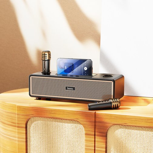 HOCO BS63 Graceful — це стильна та потужна портативна колонка, яка чудово підходить для вечірок, сімейних посиденьок чи активного відпочинку на природі. Завдяки двом динамікам загальною потужністю 20 Вт вона видає гучний, насичений звук із виразними басами та чистими високими частотами. Особливу родзинку додає повноцінна підтримка караоке: у комплекті йдуть одразу два бездротові мікрофони, що дозволяють співати разом із друзями без обмежень у русі та створювати справжню святкову атмосферу.