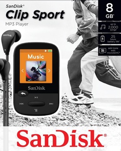Портативний плеєр SanDisk Sansa Clip Sport класичного чорного кольору ідеально підійде для кожного. Він має кліпсу, яку можна надійно закріпити на одязі та не турбуватися, що плеєр впаде під час тренувань. Він має невелику вагу та чудову автономну роботу до 25 годин. Дисплей дозводить без проблем налаштувати гаджет, а 8 ГБ пам'яті з підтримкою карти microSD помістять велику кількість улюбленої музики. Насолоджуйтеся тренуваннями разом із плеєром SanDisk Sansa Clip Sport.