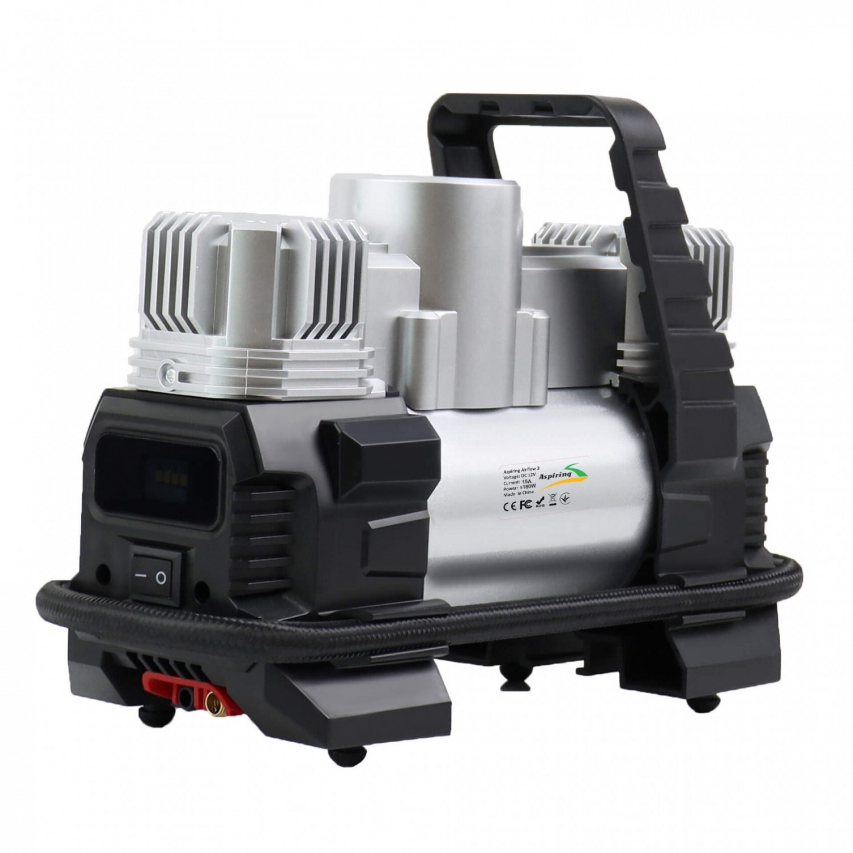 Aspiring Airflow 3 Metal — це потужний автомобільний компресор із повністю металевим циліндром і поршневою групою, який легко впорається з шинами легкових автомобілів, позашляховиків, мікроавтобусів і навіть легкої комерційної техніки. Продуктивність 85 л/хв і максимальний тиск 10 бар дозволяють накачати колесо.