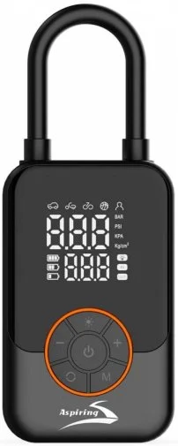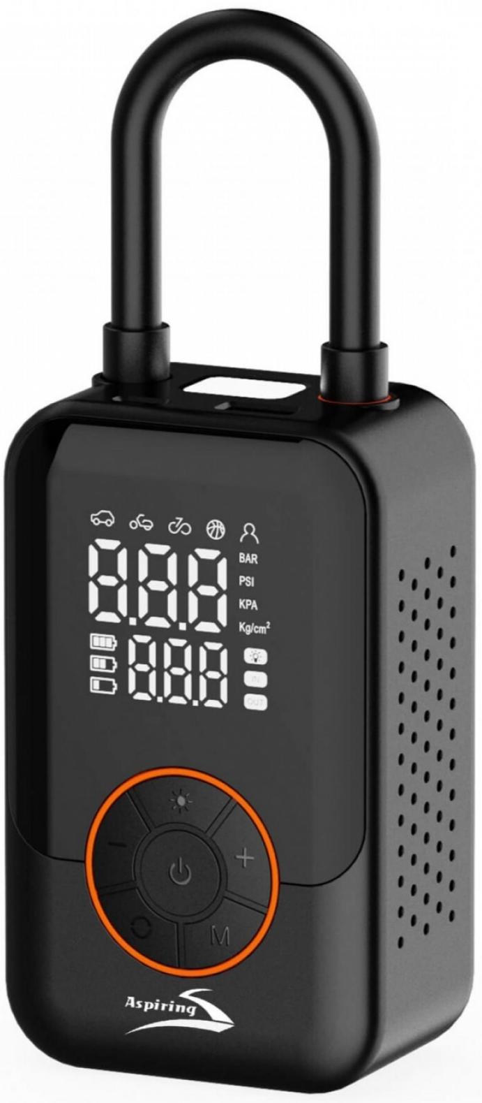 Компактний і міцний, Aspiring Storm 5 легко поміщається в бардачок чи рюкзак. Вбудований ліхтарик і стробоскоп підвищують безпеку в темний час або в екстрених ситуаціях. Чотири режими роботи та універсальні насадки роблять пристрій сумісним із різними клапанами. Низький рівень шуму (до 75 дБ) і система охолодження забезпечують комфорт і надійність.
