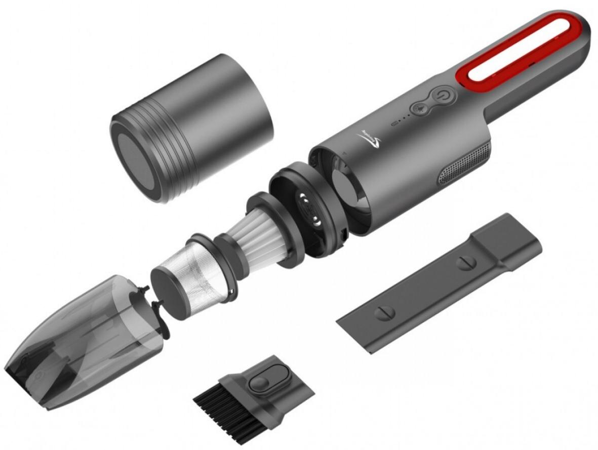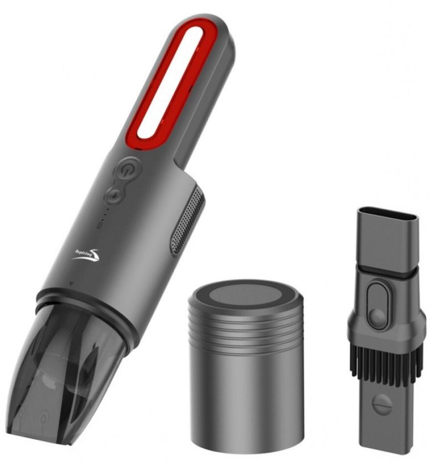 Пилосос працює на акумуляторі Li-ion 7.4V 4400 мАг, забезпечуючи автономну роботу без прив’язки до розетки. Додаткова щілинна насадка дозволяє дістатися до вузьких та важкодоступних місць, таких як простір між сидіннями або під важкодоступними панелями.