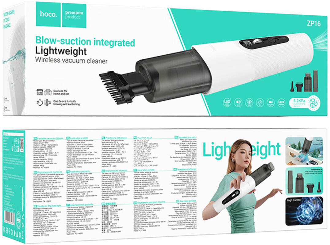 Hoco ZP16 Wave — практичне рішення для тих, хто цінує мобільність, потужність і багатофункціональність в одному пристрої, підтримуючи чистоту швидко та без зайвих зусиль.