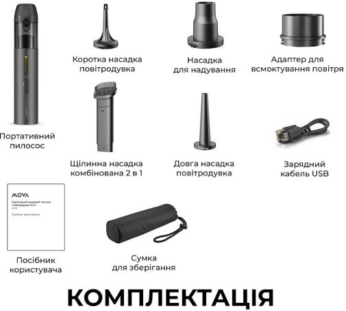 Автомобільний пилосос MOVA Portable Vortex 4-in-1 — це компактний універсальний пристрій, створений для швидкого прибирання в салоні авто та вдома, який поєднує мобільність, простоту використання та достатню потужність для щоденних задач. Завдяки силі всмоктування до 14000 Па він ефективно справляється з пилом, крихтами, піском і дрібним сміттям навіть у важкодоступних зонах.