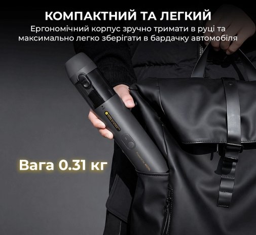Окремо варто відзначити компактний і легкий корпус із матовим покриттям, який зручно тримати в руці та легко зберігати навіть у невеликому просторі. Сучасний дизайн робить пристрій доречним як в автомобілі, так і в домашніх умовах.