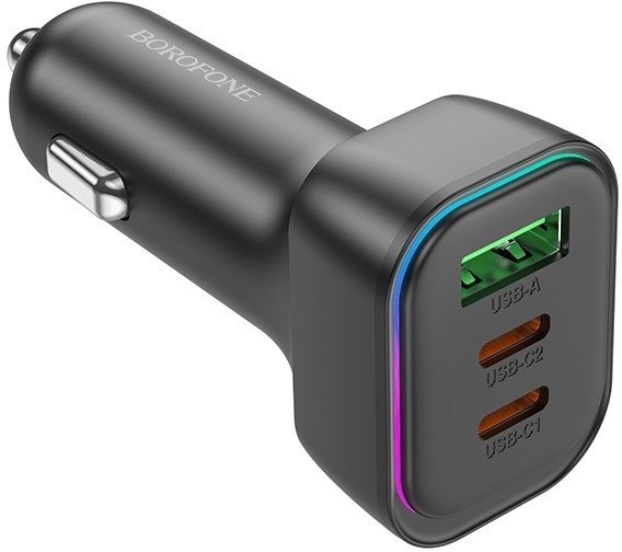 BOROFONE BZ28C Trophie 60W — це потужний автомобільний зарядний пристрій з трьома портами, який дозволяє заряджати до трьох гаджетів одночасно. Два порти USB Type-C по 30 Вт кожен і один USB Type-A на 18 Вт забезпечують загальну потужність 60 Вт для ефективної зарядки смартфонів, планшетів, навушників чи навігаторів.