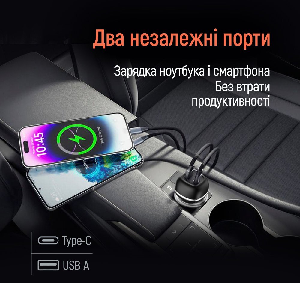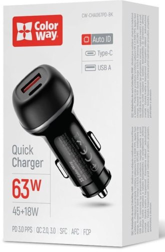 Автомобільний зарядний пристрій ColorWay потужністю 63 Вт є одним із найзручніших рішень для тих, хто багато часу проводить за кермом і потребує швидкої та надійної зарядки гаджетів. Завдяки комбінації порту USB-C з технологією Power Delivery до 45 Вт та порту USB-A з підтримкою Quick Charge до 18 Вт пристрій дозволяє одночасно заряджати два мобільні девайси на максимальній швидкості без будь-яких компромісів. Така потужність ідеально підходить для сучасних смартфонів, планшетів і навіть невеликих ноутбуків, роблячи поїздки значно комфортнішими.