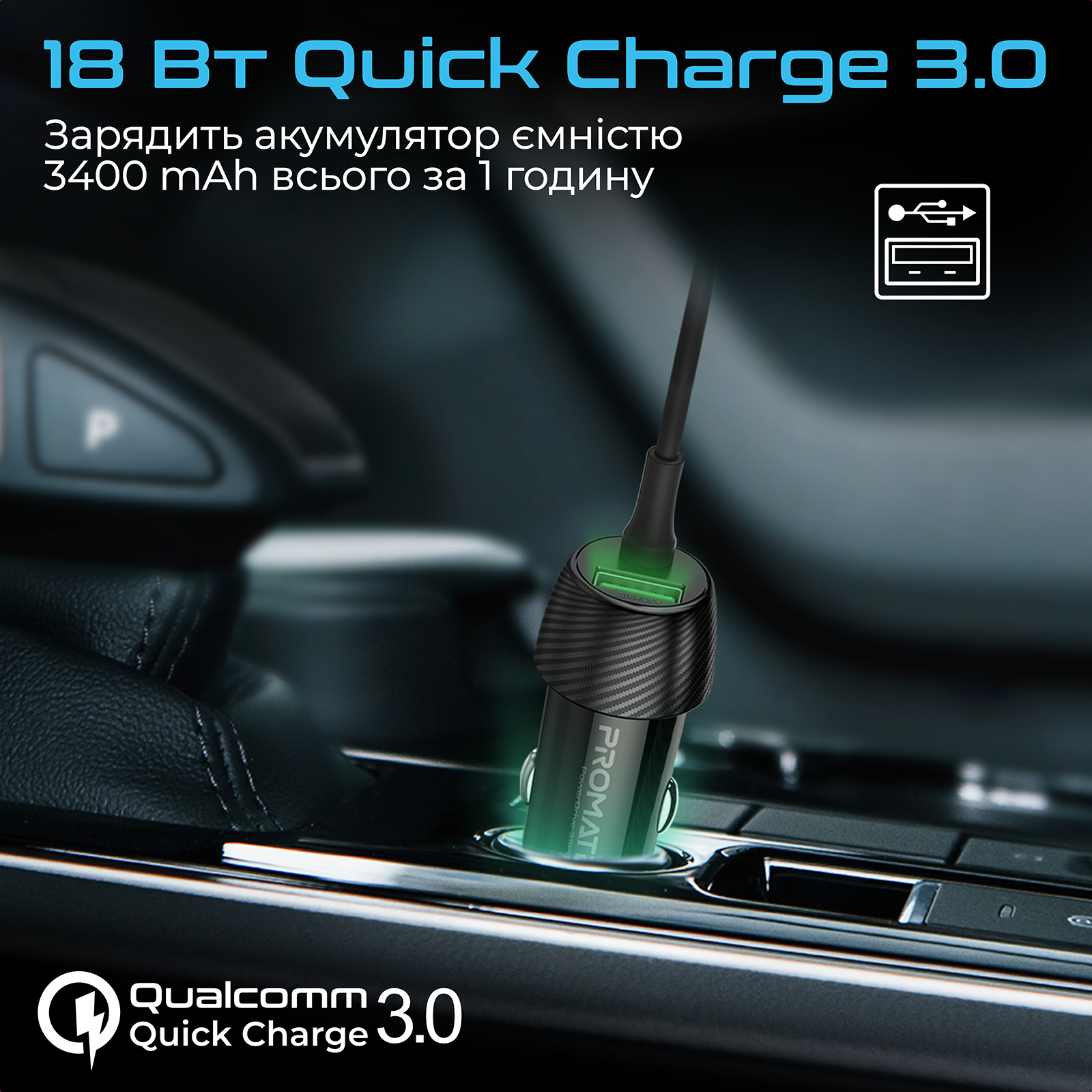 - 18 Вт USB-A порт: З підтримкою технології Qualcomm Quick Charge 3.0, працює в трьох режимах: 5В/3А, 9В/2А, 12В/1.5А.