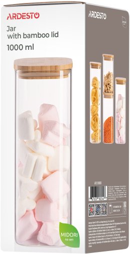 Квадратну банку для зберігання ARDESTO серії Midori об’ємом 1 000 мл виготовлено з екологічного боросилікатного скла, яке не вбирає запахи, зберігаючи аромат і смак продуктів, та гарантує довговічність виробу. Бамбукова кришка забезпечує герметичне паковання. Виріб можна мити в посудомийній машині (крім бамбукової кришки).