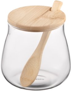 Банка ARDESTO Midori Sugar – це стильне рішення для зберігання цукру, спецій або інших сипких продуктів. Банку об’ємом 500 мл виготовлено з екологічного боросилікатного скла, яке не вбирає запахів, кришка з бамбуку створює герметичне паковання. Виріб можна мити в посудомийній машині (крім бамбукової кришки), що зумовлює практичність для повсякденного вжитку.