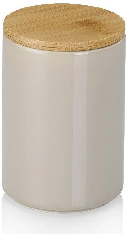 Німецький виробник посуду та начиння для кухні KELA представляє стильну та практичну керамічну ємність для зберігання сипучих KELA Cady. Кераміка краще зберігає сипучі продукти, не дозволяє їм сперти чи насититися сторонніми запахами. Дерев'яна кришка з натурального бамбука щільно зариває ємність завдяки силіконовому кільцю.