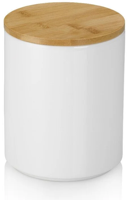 Німецький виробник посуду та начиння для кухні KELA представляє стильну та практичну керамічну ємність для зберігання сипучих KELA Cady. Кераміка краще зберігає сипучі продукти, не дозволяє їм сперти чи насититися сторонніми запахами. Дерев'яна кришка з натурального бамбука щільно зариває ємність завдяки силіконовому кільцю.