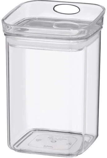 Ємність для зберігання сипучих KELA Jule (0,8 л) У справжньої господині завжди в запасі багато різної бакалії. І добре, коли ємності для зберігання сипучих продуктів є в достатній кількості, та коли вони займають мало місця в кухонних шафках; особливо, якщо кухня невелика. З огляду на всі ці тонкощі, провідний німецький виробник посуду і кухонного начиння - компанія KELA, випускає серію ємностей для зберігання сипучих продуктів KELA Jule. Ємність для зберігання KELA Jule об'ємом 0,8 літра виготовлена з міцного харчового MS-пластика. Цей матеріал надзвичайно міцний, на ньому не з'являються потертості, він не жовтіє під впливом ультрафіолету. Всі ємності KELA Jule квадратні в перетині, їх можна штабелювати в кілька ярусів, що істотно заощаджує місце на кухні. До кожної ємності KELA Jule в комплекті йде кришка, яка герметично прилягає до стінок, надійно захищаючи продукти під час зберігання від вологи та комірних шкідників. Ємності KELA Jule можуть бути використані не тільки на кухні для зберігання сипучих продуктів, але також і в побуті: в коморі, майстерні, дитячій кімнаті. У ємностях KELA Jule зручно зберігати будь-які дрібні предмети.