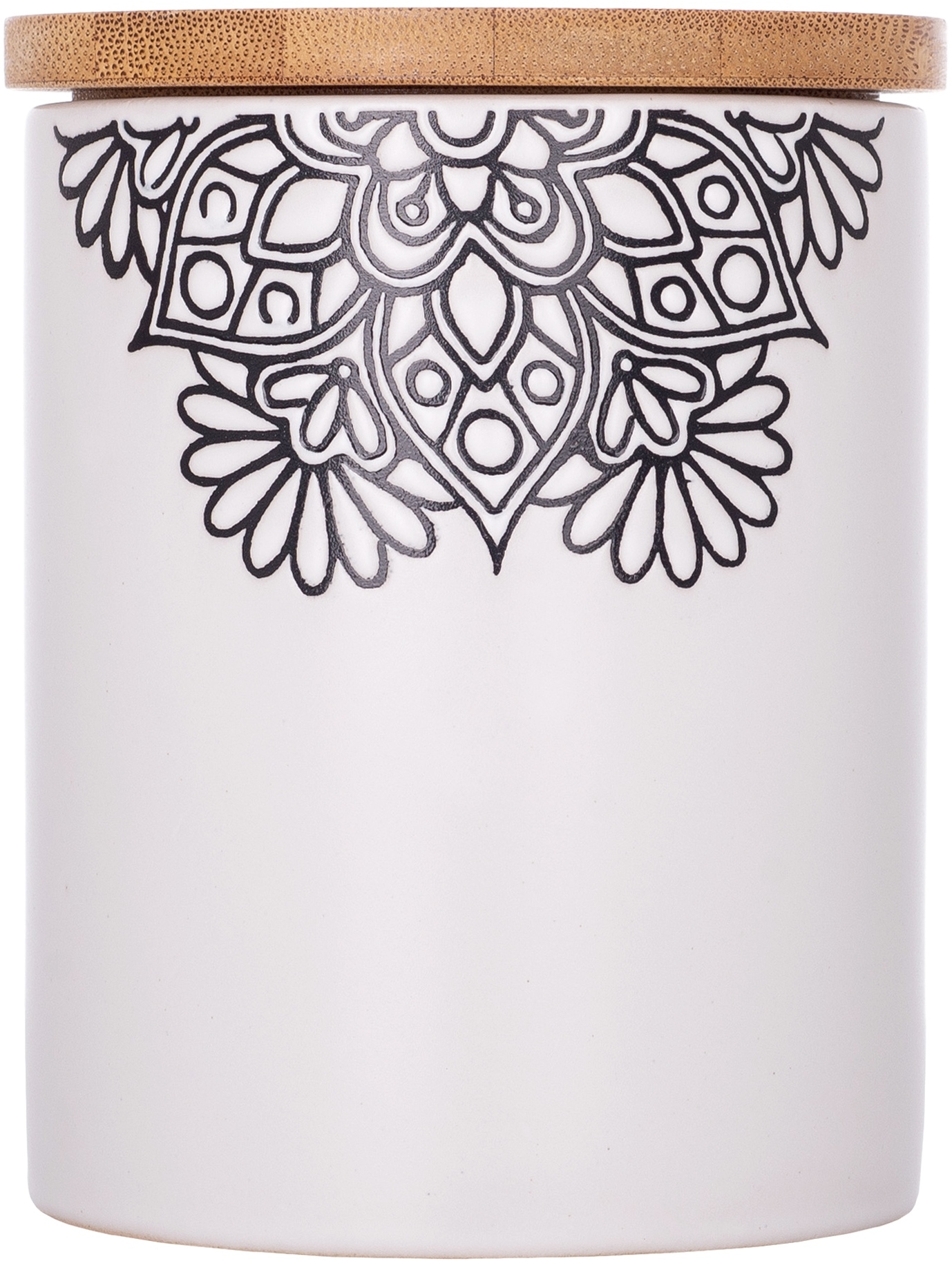 Керамічна банка з бамбуковою герметичною кришкою і спеціальним герметичним ущільнювачем захистить продукти від вологи, пилу та сторонніх запахів.