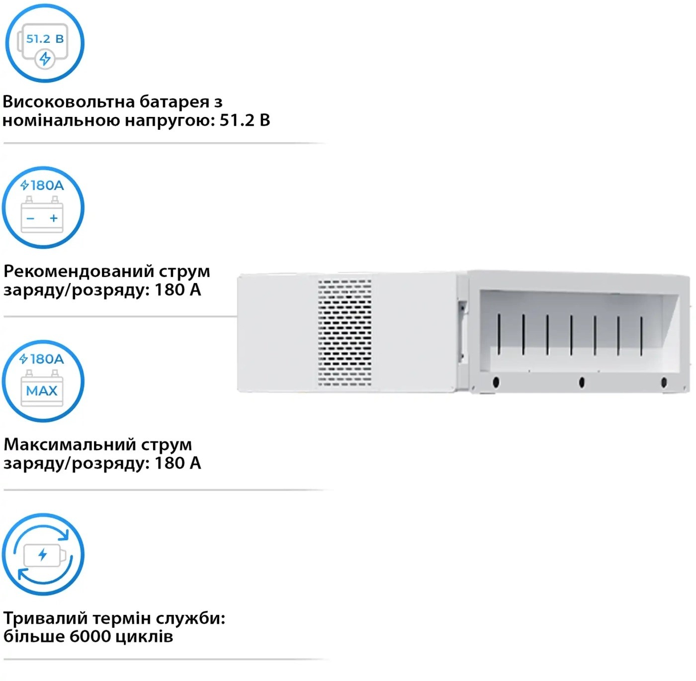 Однією з головних переваг є використання технології LiFePO4, яка гарантує високу безпеку, стабільність і довговічність. Такі батареї витримують значно більше циклів заряд-розряд порівняно зі звичайними акумуляторами, зберігаючи ефективність навіть при інтенсивному використанні. Модуль створений для роботи в високовольтних системах, що дозволяє досягати кращої ефективності інверторів, менших втрат на перетворення та простішого масштабування — кілька модулів легко з'єднуються послідовно для збільшення загальної місткості та напруги без складних додаткових налаштувань.