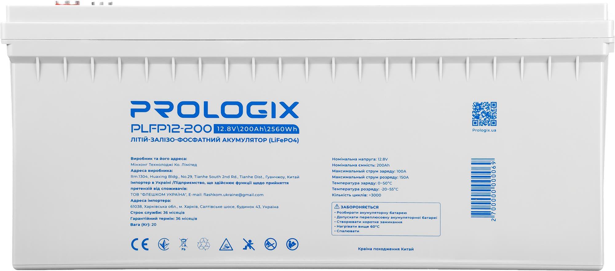 Батарея для ДБЖ ProLogix 12.8V 200AH 2560Wh — це сучасне та надійне рішення для створення резервного живлення. Використання технології LiFePO4 забезпечує високу безпеку, стабільність роботи та тривалий термін служби, що особливо важливо для систем безперебійного живлення.