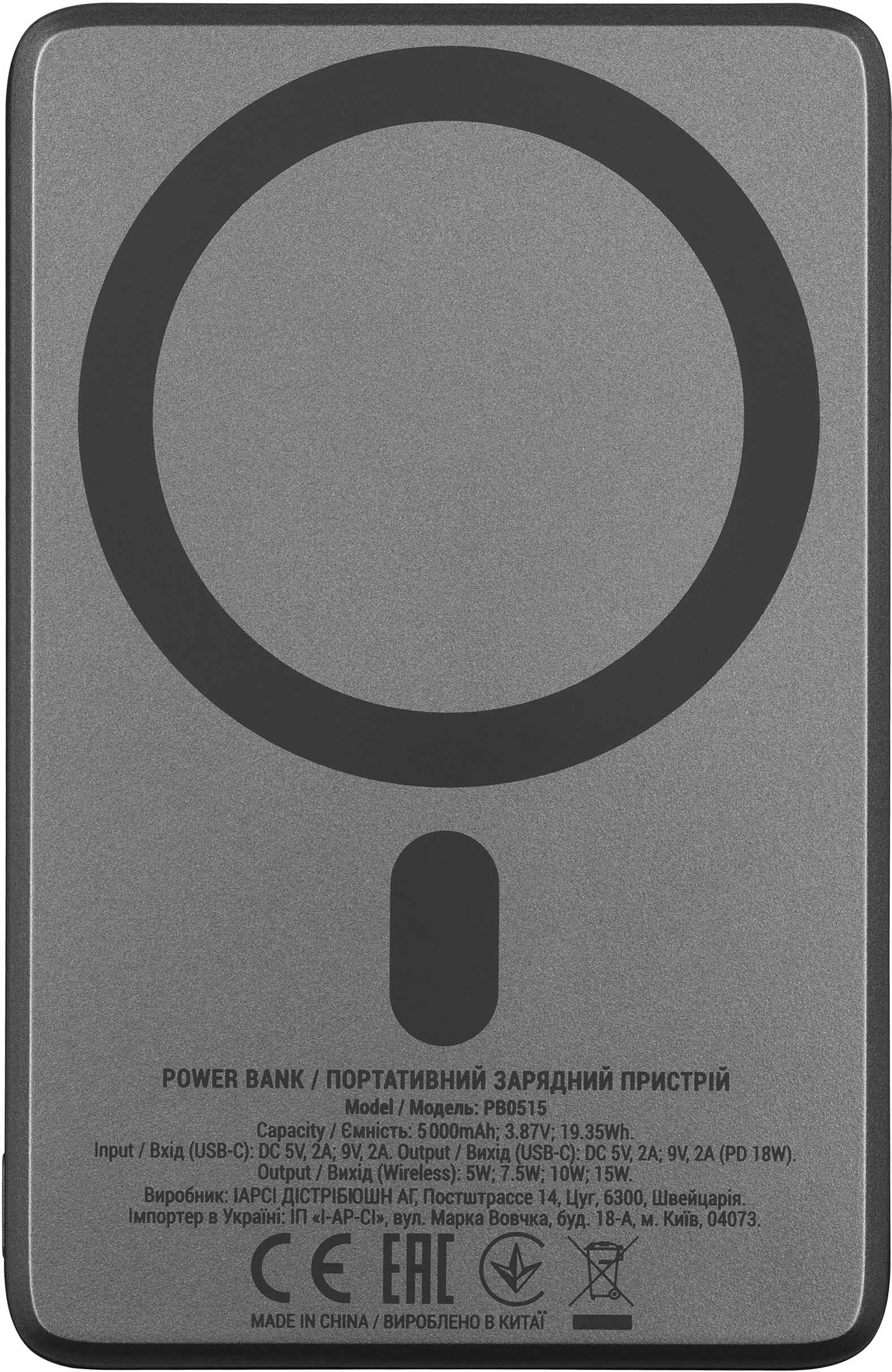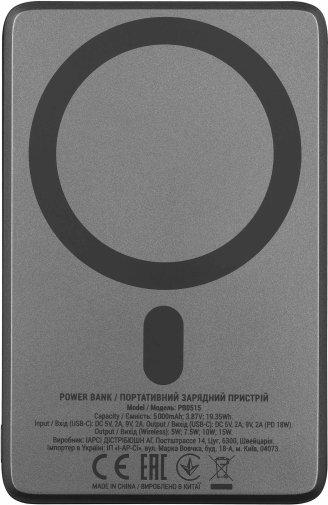 Провідний порт USB-C підтримує вихідну потужність 20 Вт за напруг 5/9/10 В — що дозволяє швидко зарядити сучасні ноутбуки, iPad або смартфони з підтримкою Power Delivery і Huawei SuperCharge. Вхід USB-C для заряджання самого павербанка працює на 5 В / 3 А та 9 В / 2 А, що прискорює час відновлення заряду порівняно зі стандартними 5-вольтовими рішеннями. У комплекті постачається кабель USB-C – USB-C завдовжки 0,3 м.
