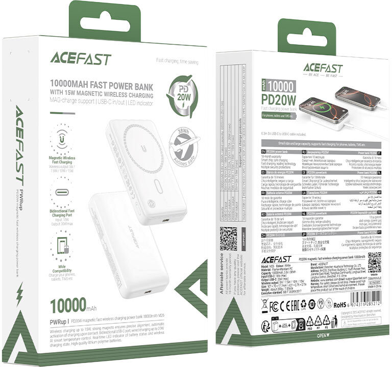 Acefast M26 — вдалий вибір для тих, хто цінує зручність без компромісів. Це не просто резервне джерело живлення, а повноцінний аксесуар для щоденного використання: магнітне кріплення, підтримка швидкого заряджання за більшістю популярних протоколів і стильний мінімалістичний дизайн роблять його одним із найпрактичніших рішень серед павербанків свого класу.
