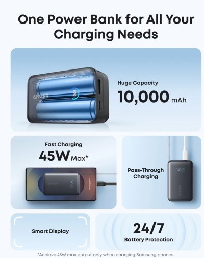 Павербанк повністю сумісний з iPhone 15/14/13/12 серіями, Samsung Galaxy S24/S23, Google Pixel, Xiaomi, OPPO, MacBook Air M2/M1, iPad Pro та Nintendo Switch. Anker Nano замінює кабелі, адаптери та громіздкі батареї, перетворюючи один пристрій на повноцінну мобільну зарядну станцію, яка гарантує, що ваші ґаджети завжди заряджені, куди б ви не йшли.