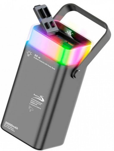 Ключова перевага пристрою — підтримка швидкої зарядки потужністю до 65 Вт через порти Type-C. Це робить павербанк придатним не лише для телефонів і планшетів, а й для ноутбуків та ультрабуків. Пристрій автоматично визначає оптимальні параметри живлення для кожного підключеного гаджета. Два порти USB Type-A забезпечують вихід до 22.5 Вт — достатньо для швидкого заряджання смартфонів, навушників і смарт-годинників. Загалом одночасно можна підключити до чотирьох пристроїв.