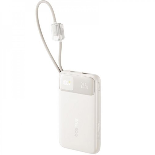 Baseus EnerFill FC11 — це павербанк місткістю 10 000 мАг із підтримкою швидкої зарядки до 22,5 Вт, цифровим дисплеєм і двома вбудованими плетеними кабелями, що дозволяє заряджати пристрої без жодного зовнішнього кабелю в кишені чи сумці.