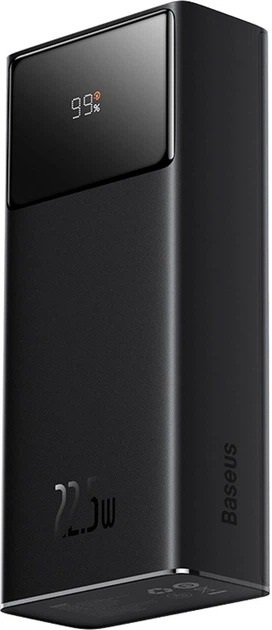 Ця модель у стриманому чорному кольорі з матовим пластиковим покриттям базується на літій-полімерному акумуляторі місткістю 30000 мАг, що гарантує до 6 повних зарядів типового смартфона чи 2–3 заряди планшета, з максимальною вихідною потужністю 22.5 Вт через три порти (два USB-A та один USB-C) для одночасного живлення кількох пристроїв, перетворюючи потенційний розряд на стабільний ресурс для тривалих днів без мережі. Підтримка протоколів PD 20W, SCP 22.5W та QC 3.0 забезпечує сумісність з широким спектром ґаджетів, включаючи iPhone, Samsung Galaxy, Huawei чи Google Pixel, з автоматичним розпізнаванням для оптимального розподілу струму, роблячи її незамінним помічником для тих, хто цінує простоту без зайвих ускладнень.