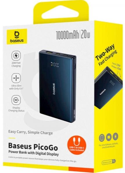 Baseus PicoGo 10000mAh — це ультракомпактний і потужний павербанк, створений спеціально для тих, хто цінує мінімальні розміри, максимальну швидкість зарядки та зручність у повсякденному житті. Ця модель ідеально підходить для щоденного використання, подорожей, роботи чи активного способу життя, коли потрібно швидко поповнити заряд смартфона, планшета чи навушників без зайвого об’єму в кишені.