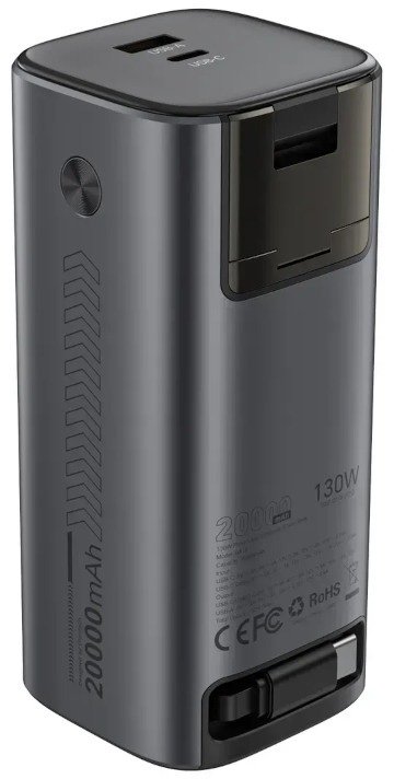 Модель підтримує сучасні технології швидкої зарядки, включаючи Power Delivery (PD), QC та AFC Samsung. Один з портів USB-C видає до 100 Вт, що дозволяє швидко відновлювати заряд потужних ноутбуків. Додаткові порти дають змогу одночасно заряджати кілька пристроїв, а підтримка різних напруг (5V, 9V, 12V, 15V, 20V) забезпечує сумісність з широким колом техніки.