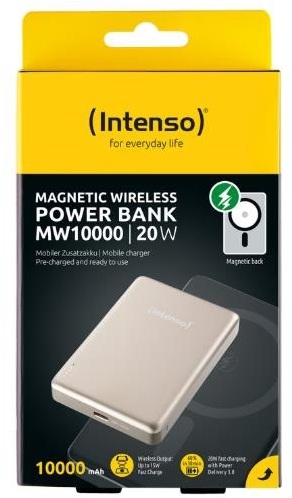 Батарея універсальна Intenso MW10000 10000mAh 20W/Qi 15W — це стильний магнітний power bank, що поєднує бездротову зарядку з високою автономністю, ідеально пасуючи для власників iPhone та інших гаджетів у динамічному ритмі життя. З місткістю 10 000 мАг на базі літій-полімерного акумулятора, він забезпечує кілька повних циклів живлення для смартфонів чи планшетів.