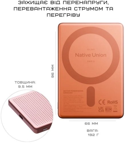 Native Union Active Magnetic 5000mAh — це не просто зарядка, а елегантний аксесуар, який підкреслює ваш стиль, забезпечує свободу від кабелів і розеток та ідеально вписується в екосистему MagSafe. Якщо ви шукаєте найтонший, найстильніший і функціональний павербанк для щоденного використання — цей варіант стане бездоганним вибором для сучасного міського життя.