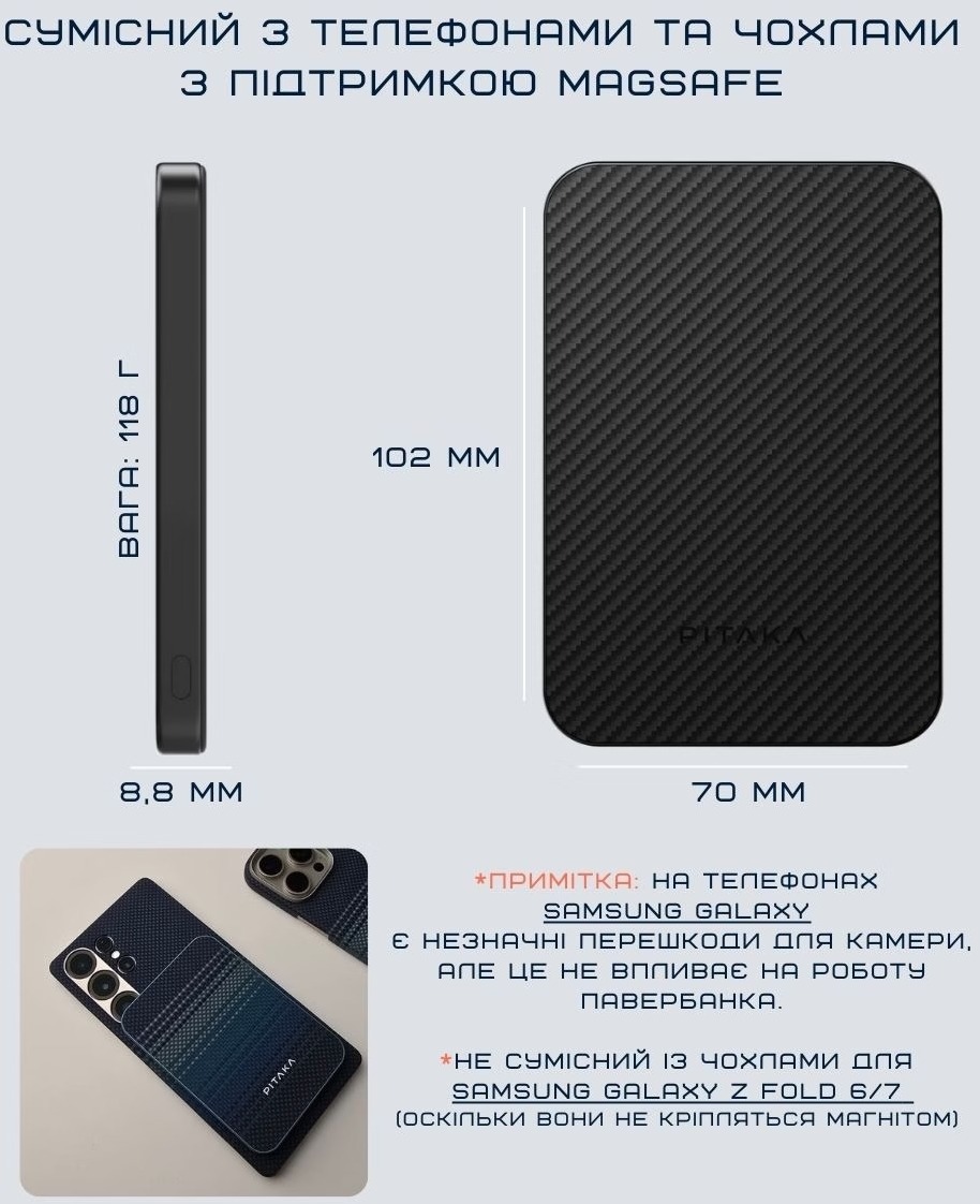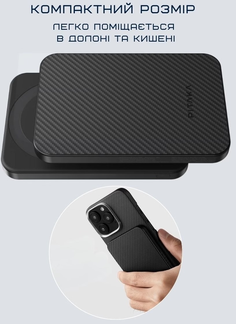 Pitaka Aramid Fiber Magnetic Qi2 — це не просто павербанк. Це елегантний аксесуар преміумкласу, який заряджає магнітно, швидко, виглядає як мистецтво й не підводить у найвідповідальніший момент. Просто покласти телефон — і ти знову на зв’язку, де завгодно. Ідеально для фанатів Apple, мінімалістів і тих, хто хоче, щоб навіть павербанк виглядав дорожче, ніж коштує.