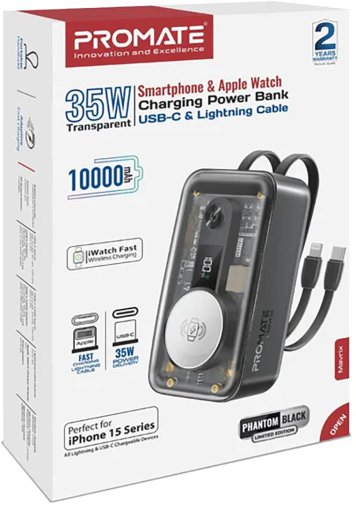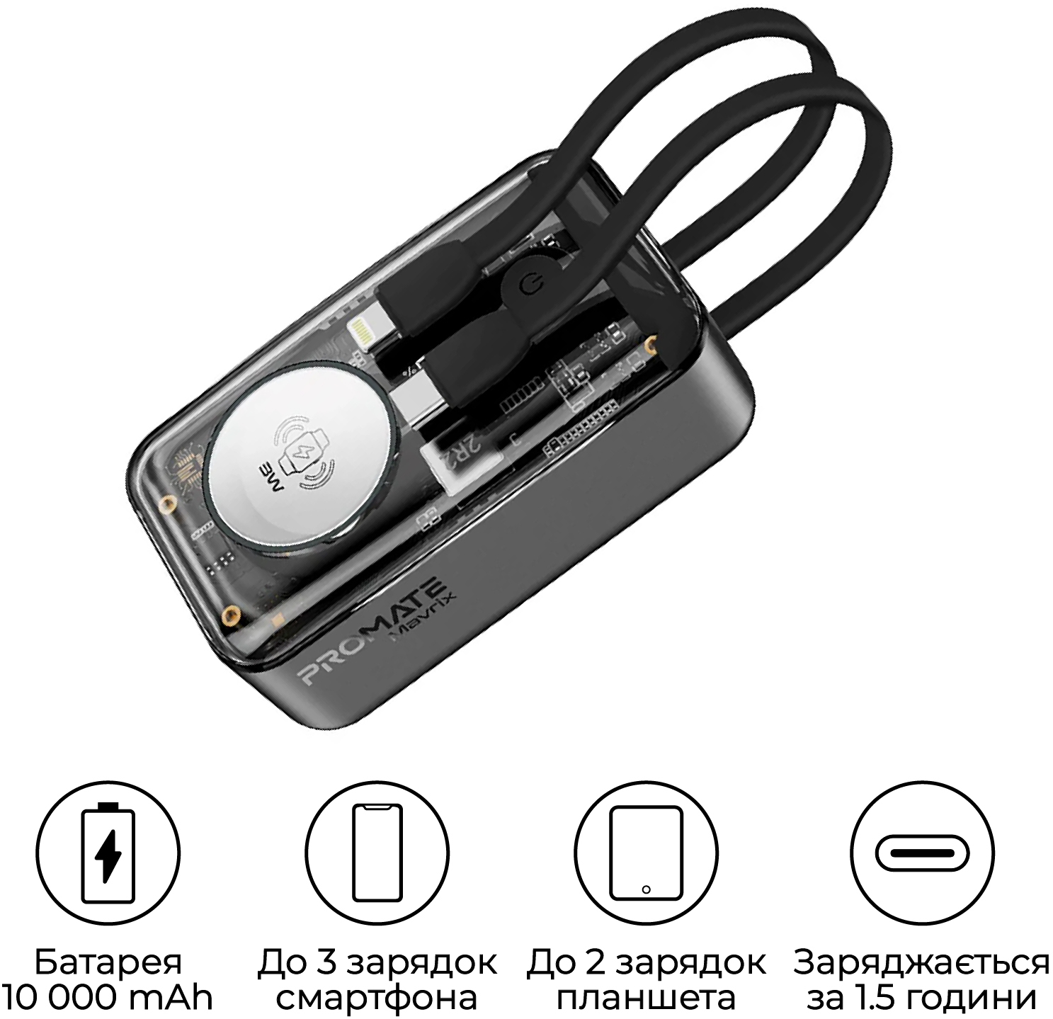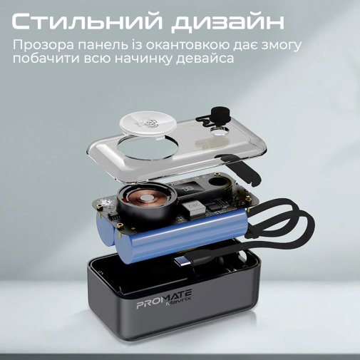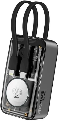 Promate Mavrix - ультракомпактний і багатофункціональний павербанк з USB-C Power Delivery портом, магнітним кріпленням для Apple Watch і вбудованими USB-C і Lightning кабелями.