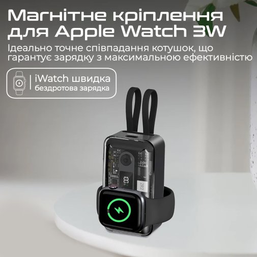 - Магнітне кріплення 3W: Ідеально точне співпадіння котушок для Apple Watch, що гарантує зарядку з максимальною ефективністю.