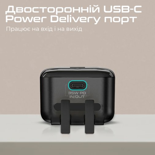 - Двосторонній USB-C Power Delivery порт: Блискавична швидкість заряджання смартфона або планшета.