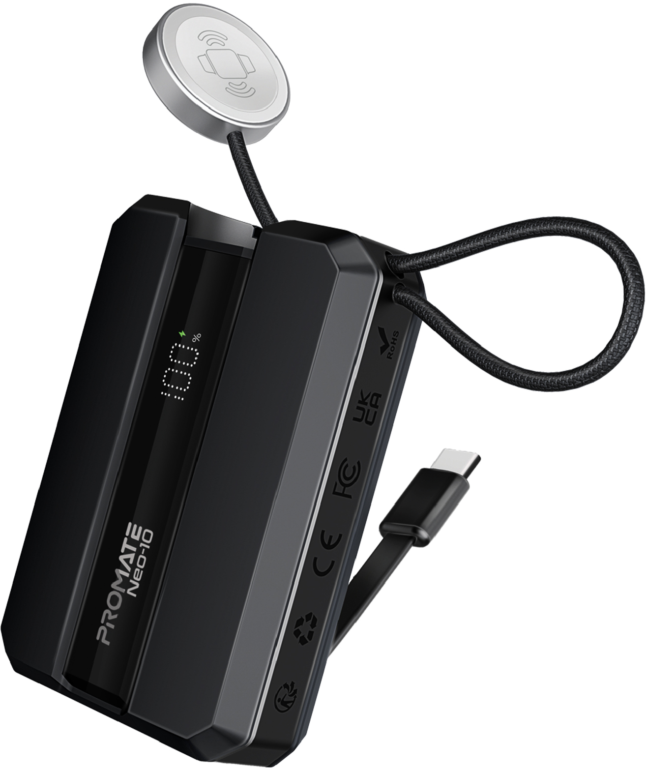 Promate Neo-10 - компактний і багатофункціональний павербанк на 10000 mAh з підтримкою технології Power Delivery, магнітним кріпленням для Apple Watch і вбудованими USB-C кабелем.