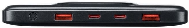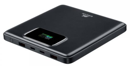 Пристрій оснащений чотирма портами: двома USB-C і двома USB-A. Кожен із портів USB-C підтримує повний діапазон протоколів Power Delivery — 5/9/12/15/20 В із максимальним струмом до 5 А, що забезпечує ту саму швидкість зарядки, що й рідний блок живлення ноутбука. Порти USB-A підтримують Quick Charge 3.0 — 5/9/10/12 В, тобто швидку зарядку для смартфонів на базі Qualcomm. Завдяки чотирьом виходам можна одночасно живити ноутбук, планшет і два смартфони без суттєвих втрат у швидкості. Вбудований LCD-дисплей відображає точний рівень заряду у відсотках, що набагато зручніше за звичайні LED-індикатори зі ступеневою шкалою. Надійність пристрою підкріплена комплексним захистом від перевантаження, перезарядження, надмірного розрядження та короткого замикання.