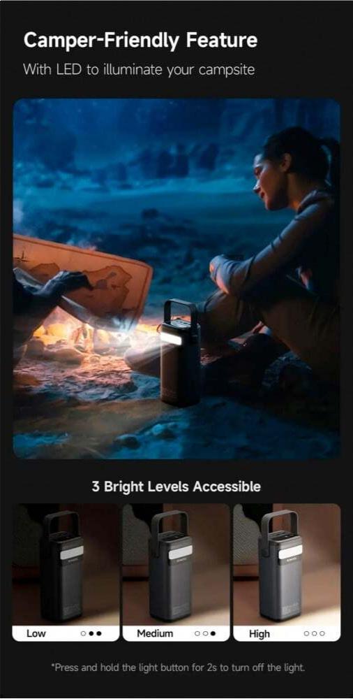 Конструкція Romoss PMT60 акцентує на міцності та зручності: пластиковий корпус з матовим покриттям стійкий до подряпин, ударів і щоденного зносу, з компактними габаритами 190 х 94.9 х 75.3 мм та вагою близько 1670г для легкого транспортування, з вбудованим LED-дисплеєм для моніторингу рівня заряду та статусу в реальному часі без зайвих відволікань, а також ручкою для перенесення для зручності в дорозі. Повний заряд пристрою займає до 4.5 годин від мережі з підтримкою 100 Вт, а вбудований екстрений ліхтар з режимами SOS додає практичності для нічних пригод чи аварійних ситуацій. Система захисту від перегріву, короткого замикання та перевантаження гарантує безпеку для пристроїв і користувача.