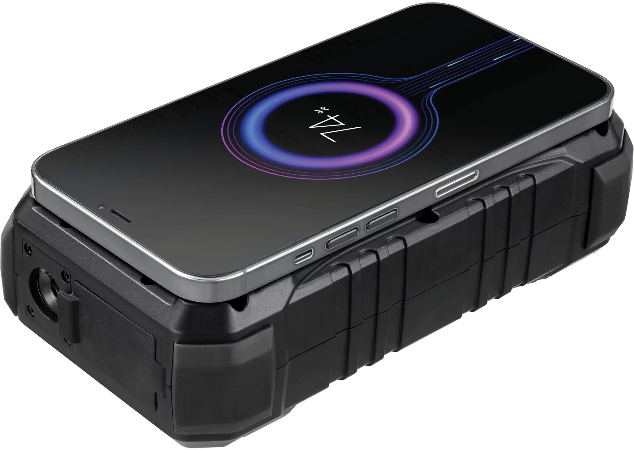 У міцному чорному корпусі з гумовим бампером і алюмінієвими вставками вона виглядає як військовий гаджет — і не дарма: IP66-захист від води та пилу означає, що її можна мити під краном, занурювати в калюжу чи залишати під дощем, а ударостійкість витримує падіння з 1.5 м на бетон без втрати функціональності. Місткість 27 000 мАг (99.9 Вт·год) — це реально 5–6 повних зарядів смартфона, 2–3 заряди планшета чи навіть повна зарядка ноутбука через Type-C PD 65 Вт.