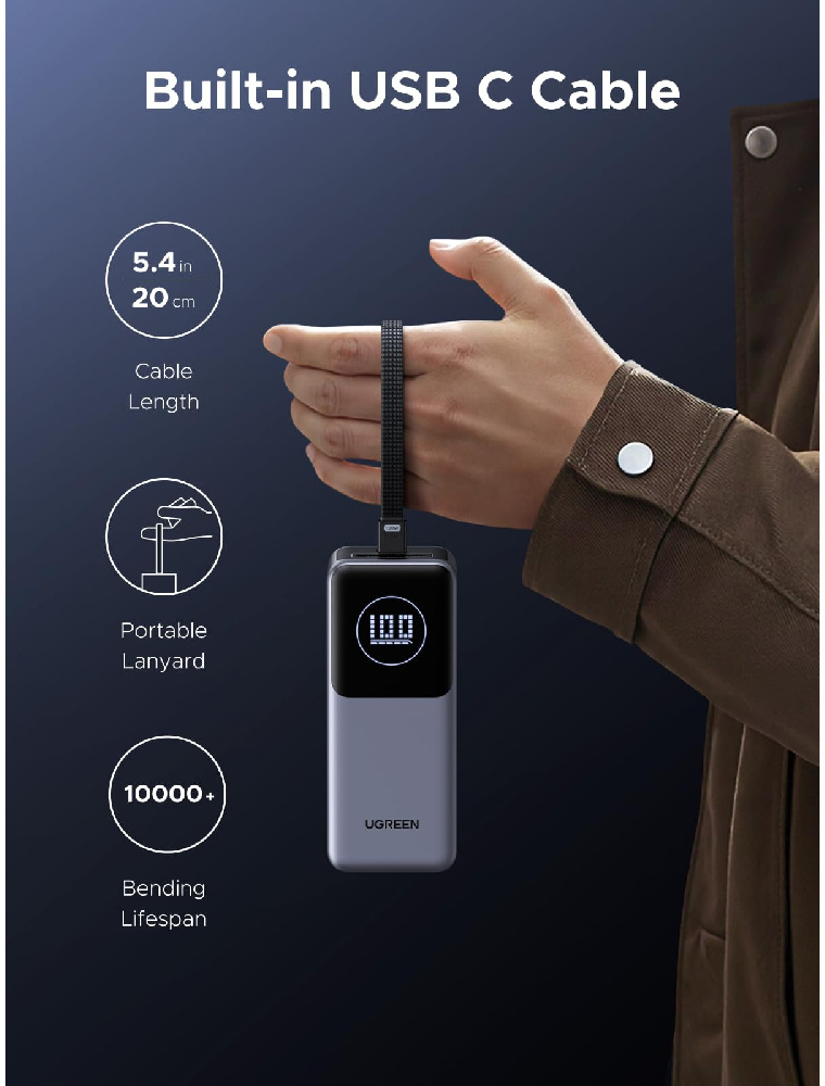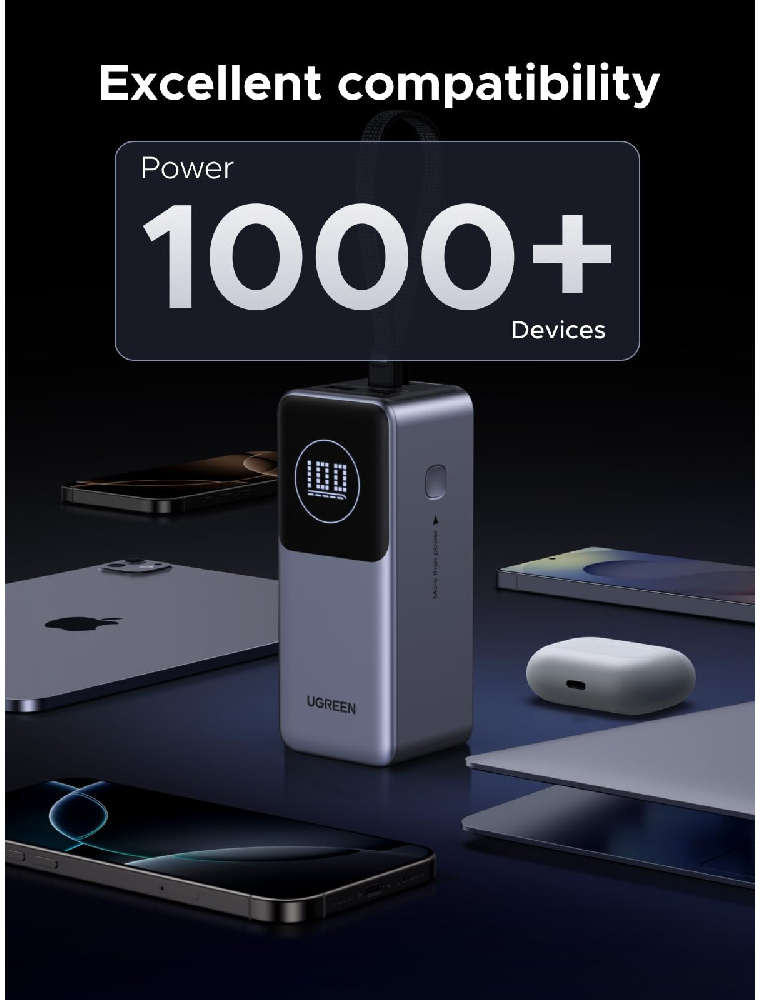 Ugreen PB723 — це оптимальний вибір для тих, хто хоче отримати максимум від портативного живлення. Вбудований кабель, висока потужність, швидка зарядка й надійні елементи роблять його одним із найкращих рішень у своєму класі для щоденного використання та подорожей.