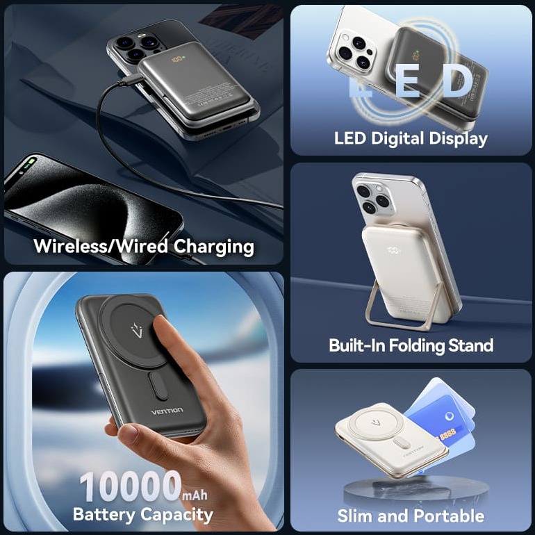 Vention поєднує в собі сучасні технології магнітного кріплення, бездротової та швидкої зарядки, пропонуючи універсальне рішення для активного способу життя. Це надійний помічник, який допомагає залишатися на зв’язку в будь-яких ситуаціях — від подорожей до напруженого робочого дня.