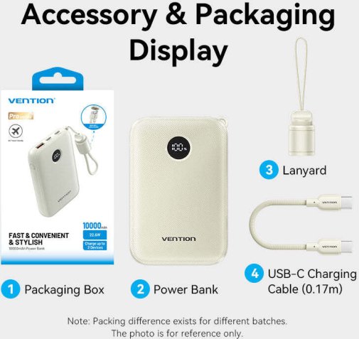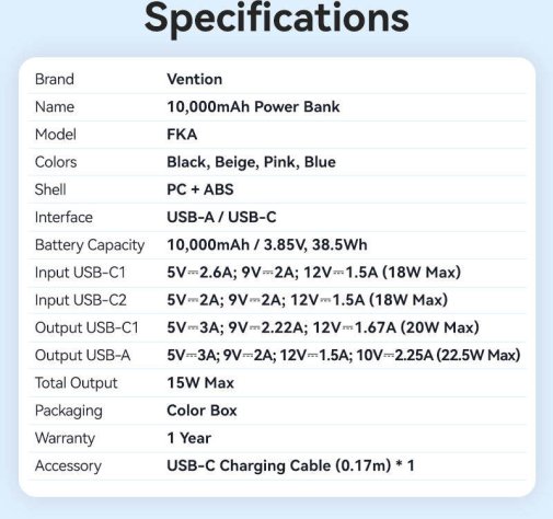 Універсальна батарея Vention FKA — це ультракомпактний і дуже практичний павербанк, який розв'язує головну проблему сучасних ґаджетів — забути кабель — і завжди залишає тебе на зв’язку.
