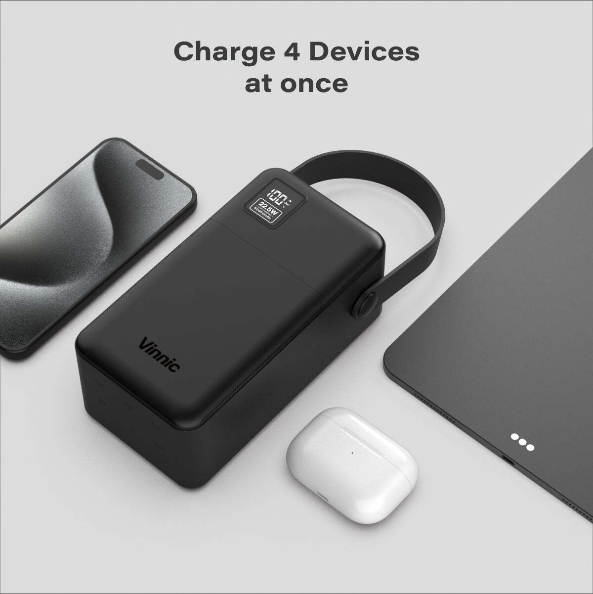 Ця модель у стриманому чорному кольорі з матовим покриттям базується на акумуляторі місткістю 60 000 мАг, який забезпечує енергією всі ваші ґаджети протягом багатьох днів. Ідеально підходить для кемпінгу, походів, тривалих поїздок або як аварійне джерело живлення. Підтримує швидке заряджання до 22.5 Вт через три USB-порти та один Type-C для одночасного живлення кількох пристроїв, перетворюючи потенційний розряд на стабільний ресурс для тривалих днів без доступу до мережі. Сумісна з широким спектром ґаджетів, включаючи iPhone, Samsung Galaxy, Huawei чи інші USB-пристрої, батарея підтримує автоматичне розпізнавання для оптимального розподілу потужності, роблячи її незамінним помічником для тих, хто цінує простоту без зайвих ускладнень.