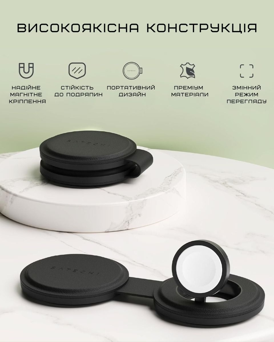 Виготовлена з преміальних екологічних матеріалів: м'які, стійкі до подряпин акценти захищають пристрої, а загальна конструкція забезпечує довговічність і знижений вплив на довкілля. Підтримує iPhone, усі моделі Apple Watch, AirPods з MagSafe-чохлом та інші Qi2-сумісні Android-пристрої.