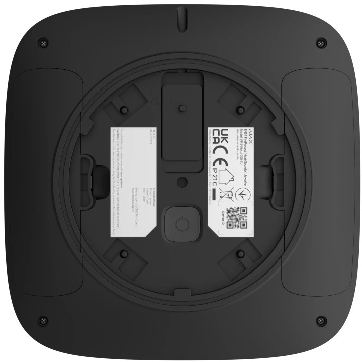EN54 FireProtect (Heat) Jeweller — це бездротовий адресний тепловий пожежний сповіщувач, сертифікований за стандартом EN 54-5 для класів A1, B і C з індексами R (спрацьовування за високою швидкістю підвищення температури) та S (відсутність спрацьовування за температури нижче мінімальної статичної). Пристрій призначений для виявлення небезпечних температур у приміщеннях і забезпечує звукове оповіщення у разі пожежної тривоги. Працює цілодобово в складі системи Ajax, незалежно від режиму охоронної системи.