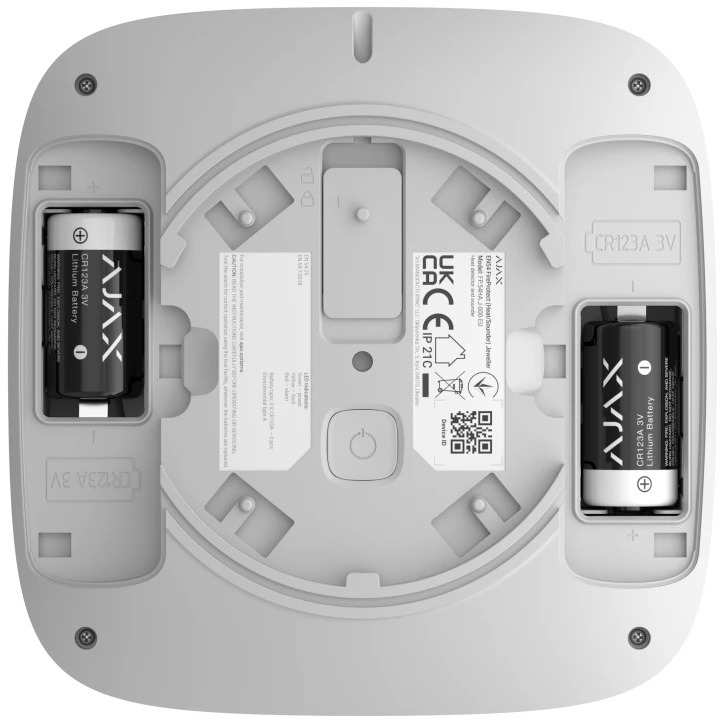EN54 FireProtect (Heat) Jeweller — це бездротовий адресний тепловий пожежний сповіщувач, сертифікований за стандартом EN 54-5 для класів A1, B і C з індексами R (спрацьовування за високою швидкістю підвищення температури) та S (відсутність спрацьовування за температури нижче мінімальної статичної). Пристрій призначений для виявлення небезпечних температур у приміщеннях і забезпечує звукове оповіщення у разі пожежної тривоги. Працює цілодобово в складі системи Ajax, незалежно від режиму охоронної системи.