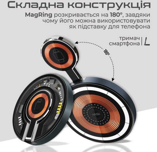MagRing розкривається на 180°, завдяки чому його можна використовувати як підставку для телефона.