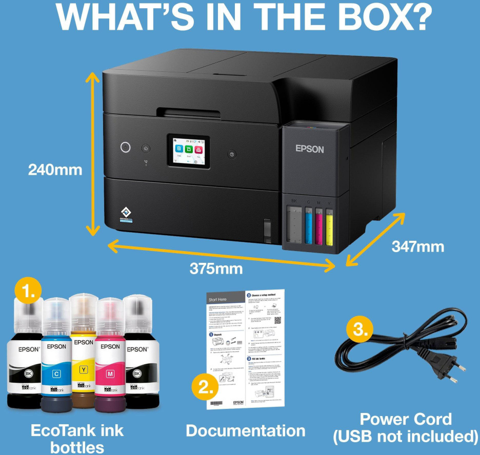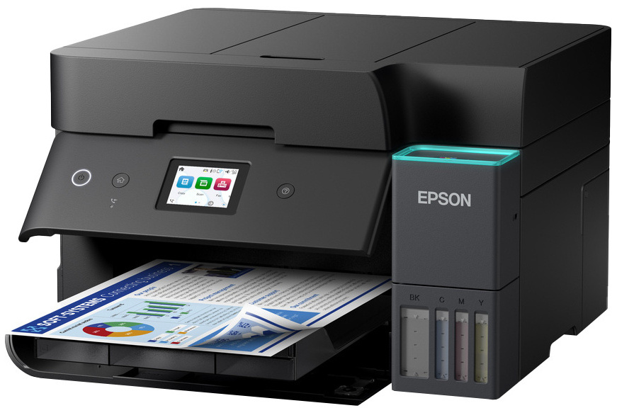 Великий кольоровий сенсорний екран спрощує управління, а зручні ємності для заправки чорнила дозволяють легко і чисто поповнювати запаси без ризику забруднити руки чи пристрій. Конструкція продумана для тривалого інтенсивного використання — механізм надійний, а чорнило не висихає навіть при нерегулярному друку. Завдяки додатку Epson Smart Panel ви можете легко налаштовувати пристрій, контролювати його стан, друкувати та сканувати безпосередньо зі свого смартфона або планшета.