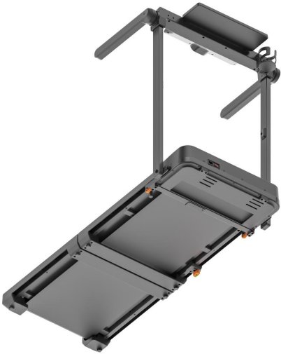 Однією з ключових особливостей Kingsmith MX10 є багатофункціональна відкидна панель, що перетворює тренажер на компактний робочий стіл. Поверхня розміром 418 × 275 мм підходить для ноутбуків до 15,6", планшетів або книг. Антиковзке покриття, піднятий край і захисні обмежувачі допомагають надійно утримувати пристрої навіть під час руху.