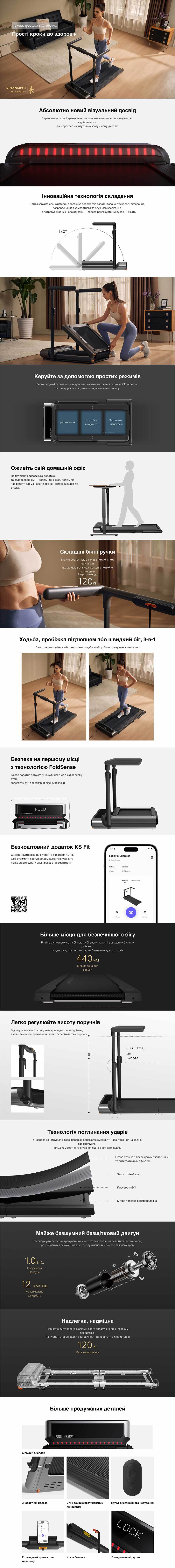 KingSmith WalkingPad R3 Hybrid Plus — це унікальне поєднання компактного дизайну, потужного двигуна та сучасних технологій, що дозволяють тренуватися будь-де без шкоди для простору та комфорту.