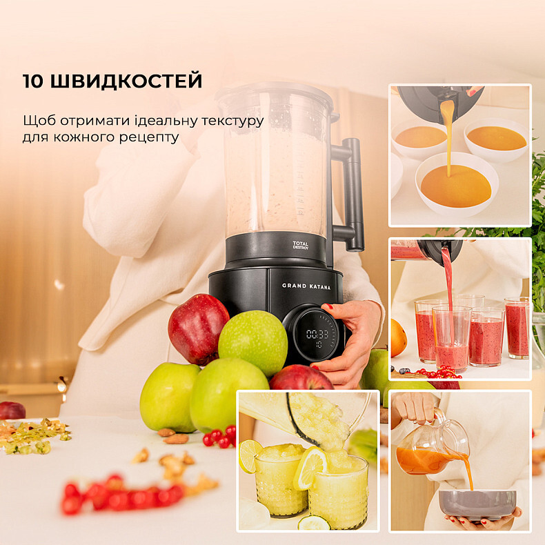 Інноваційна технологія Total Destroy з 8 титановими лезами гарантує революційне подрібнення інгредієнтів у двох напрямках одночасно, забезпечуючи максимально рівномірний результат. Цей блендер не просто змішує продукти — він трансформує їх, дозволяючи створювати найскладніші та найкреативніші рецепти.
